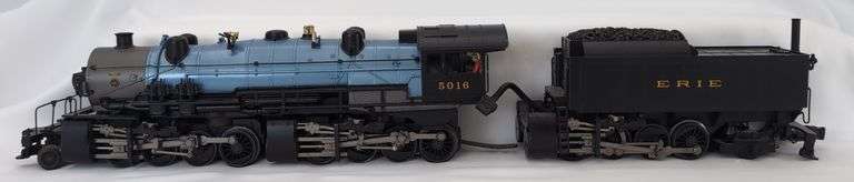 MTH Rail King O Gauge 30-1645-1 Erie Triplex 2-8-8-8-2 steam locomotive cab number 5016 with ProtoSound 3 in styrofoam, no box, literature or instructions. Locomotive and tender look gorgeous C7. Styrofoam shows little wear.