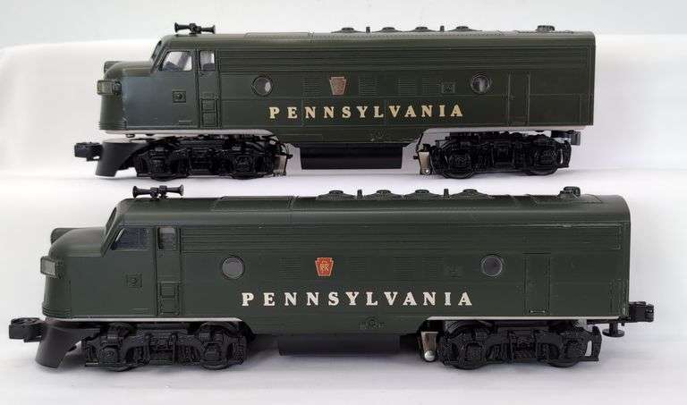 Williams O Gauge Pennsylvania diesel A units, powered and dummy, great looking clean C7. Trains are un-numbered.
