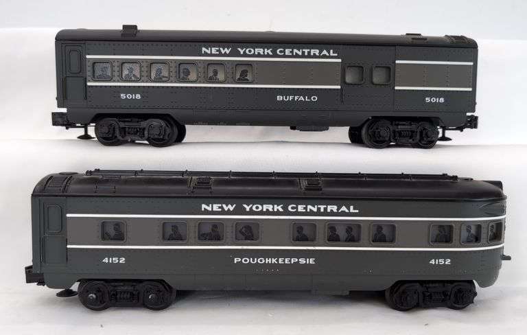 Lionel O Gauge New York Central 5018 Buffalo combine, 4152 Poughkeepsie observation passenger trains, C7. Trains are loose, no box or literature.