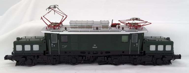 MTH Rail King O Gauge OBB 1020.23 electric krokodile electric locomotive. Train is partially dis-assembled, damaged pantograph with detached pieces, loose screws. Train has a PS-2 sticker on underside. Train should re-assemble to look C7.